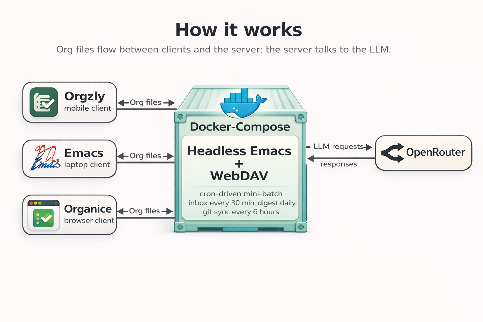 So yes, in the end I really did build a personal automation system around Org files, LLMs, and headless Emacs in Docker Compose.